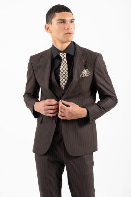 -Κοστούμι ριγέ σετ με γιλέκο σε slim fit γραμμή