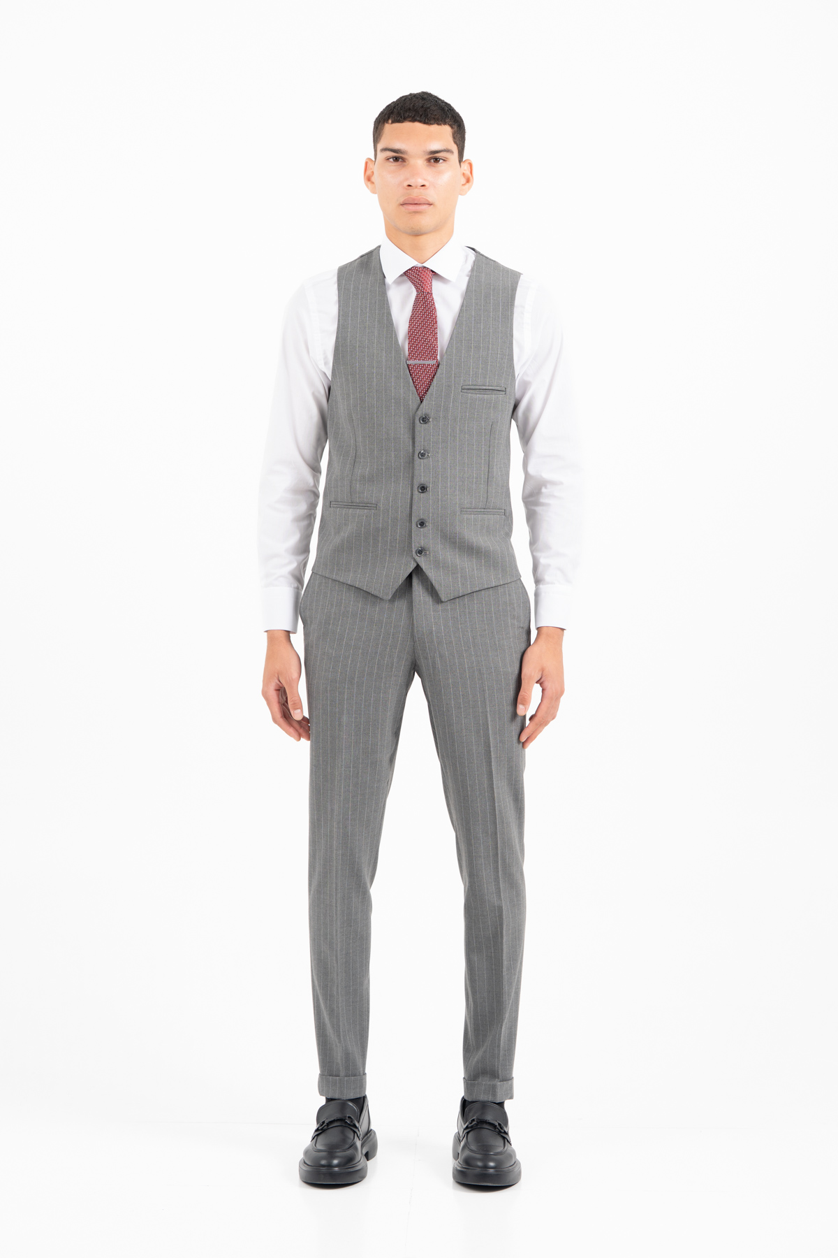 -Κοστούμι ριγέ σετ με γιλέκο σε slim fit γραμμή