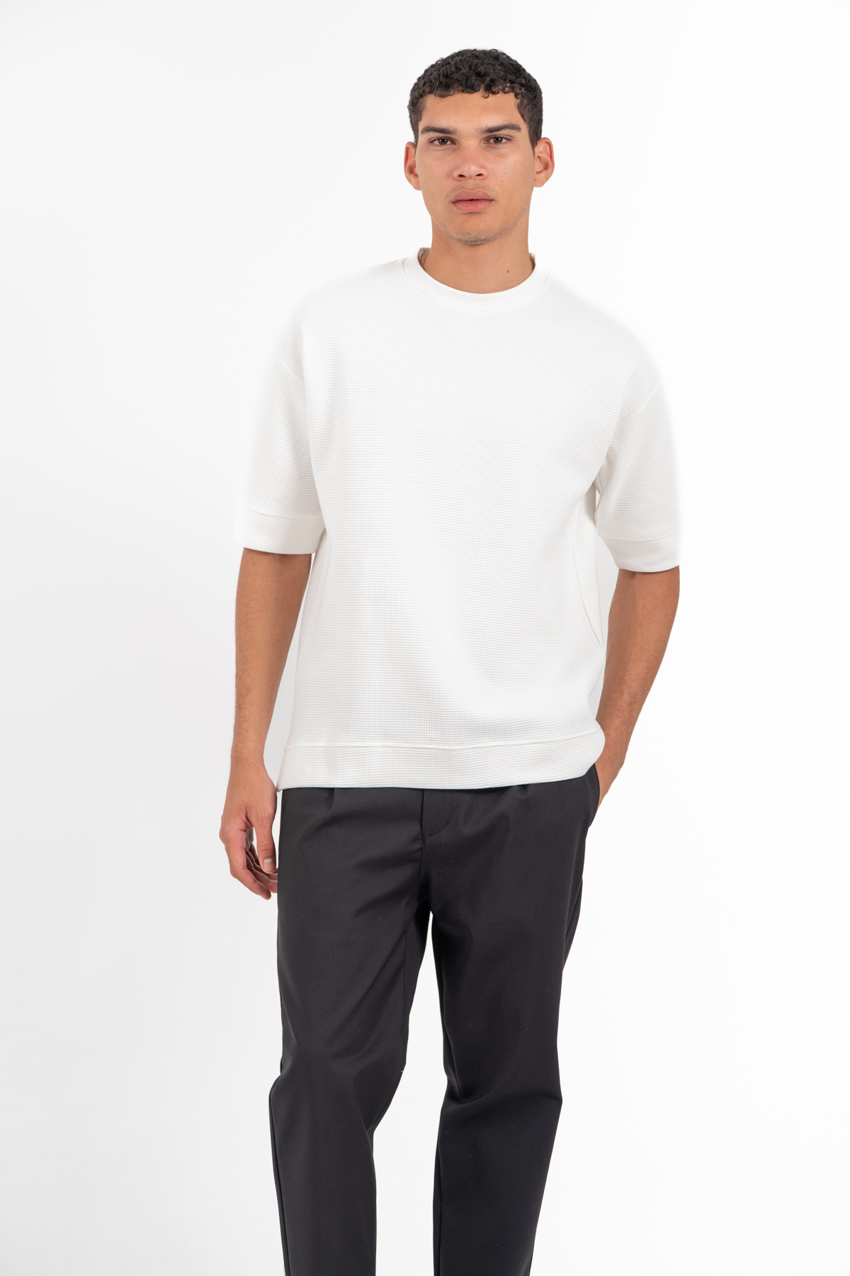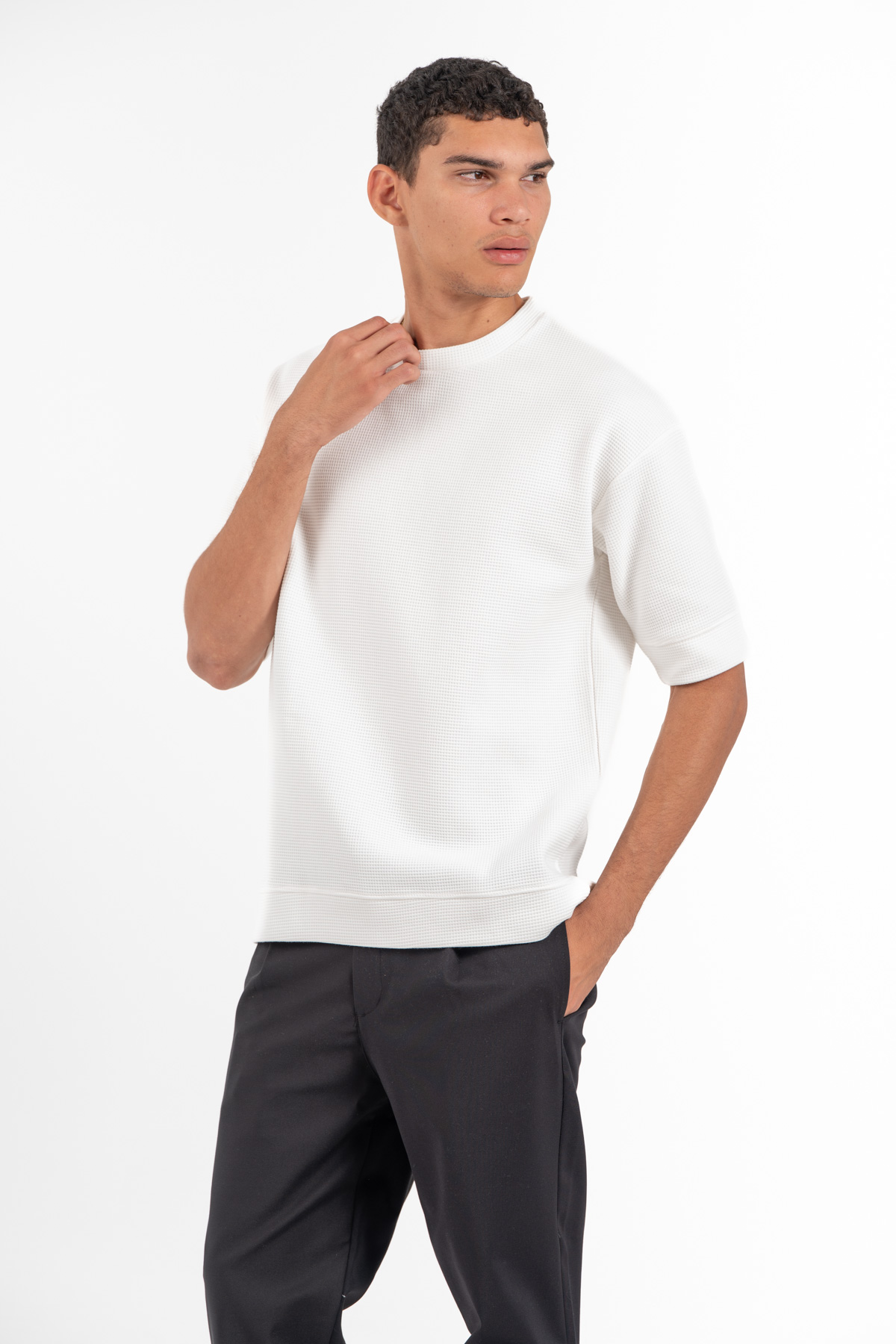 -Μπλούζα σε πικέ πλέξη oversized με τρουακάρ μανίκι