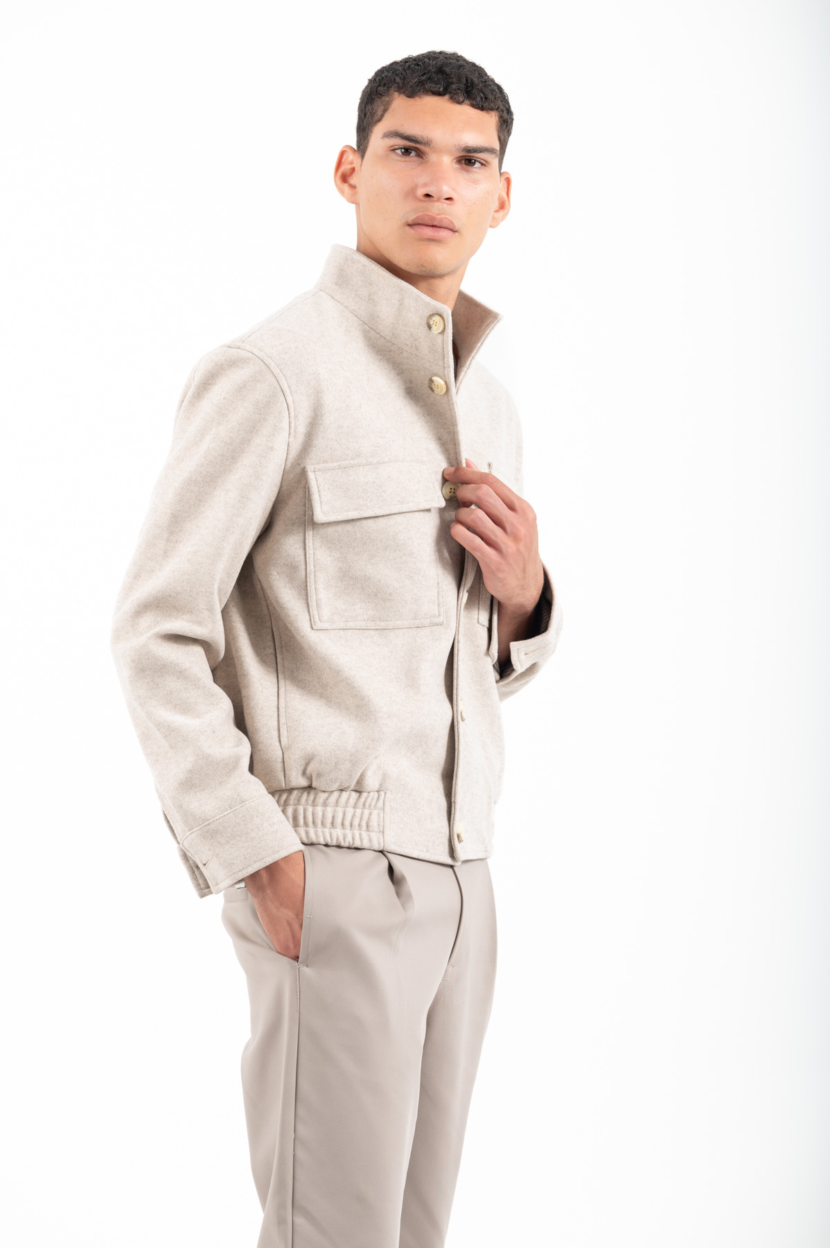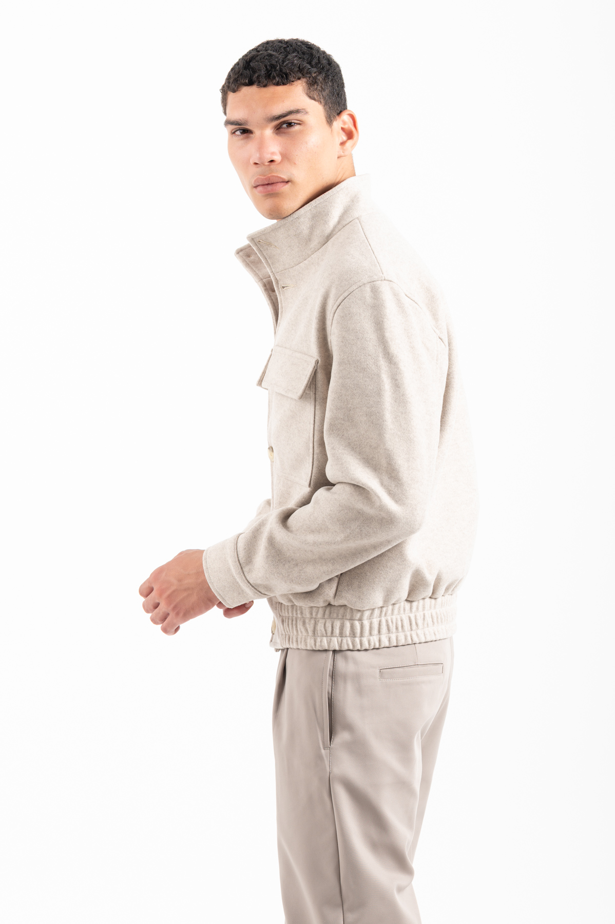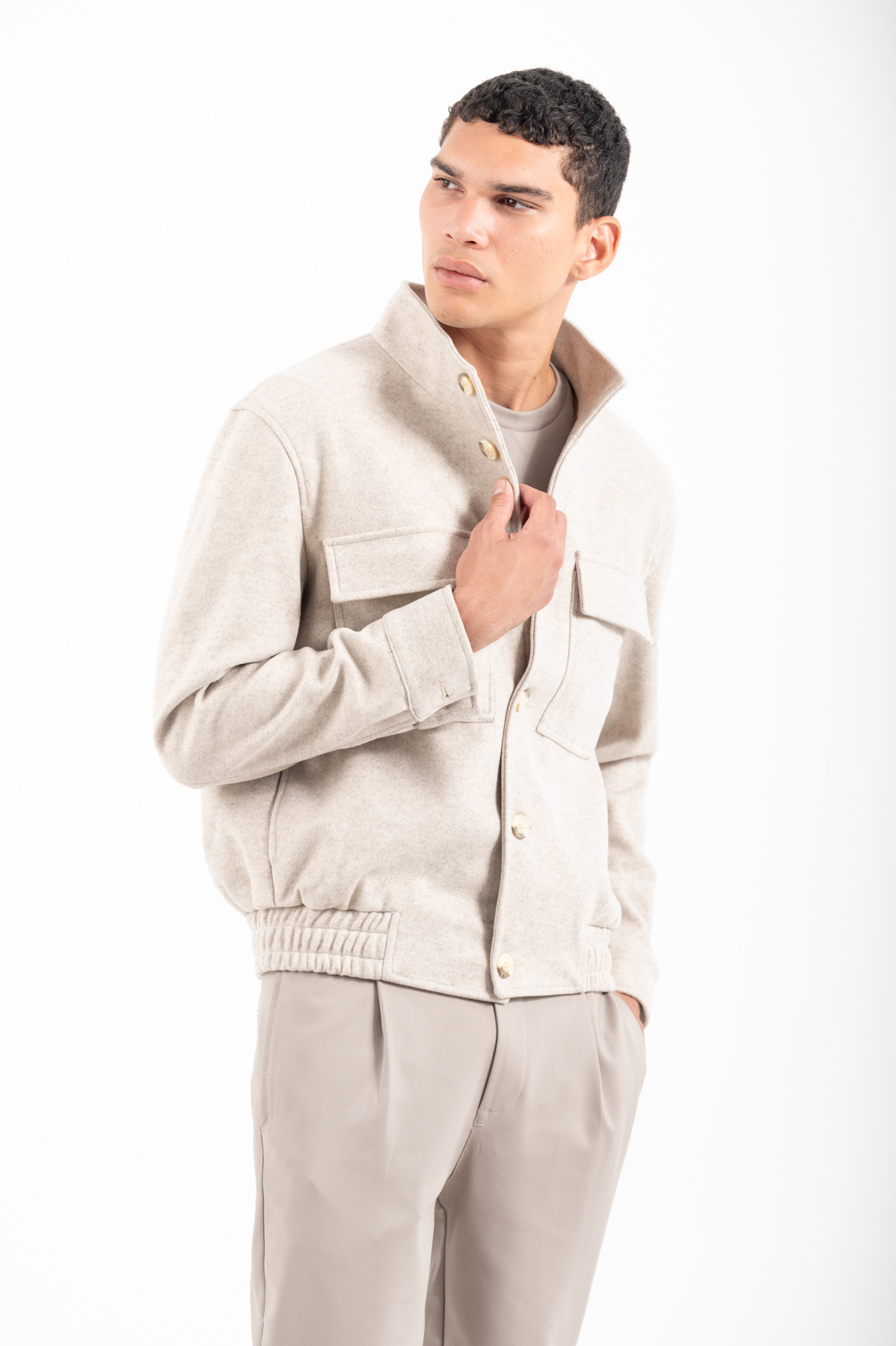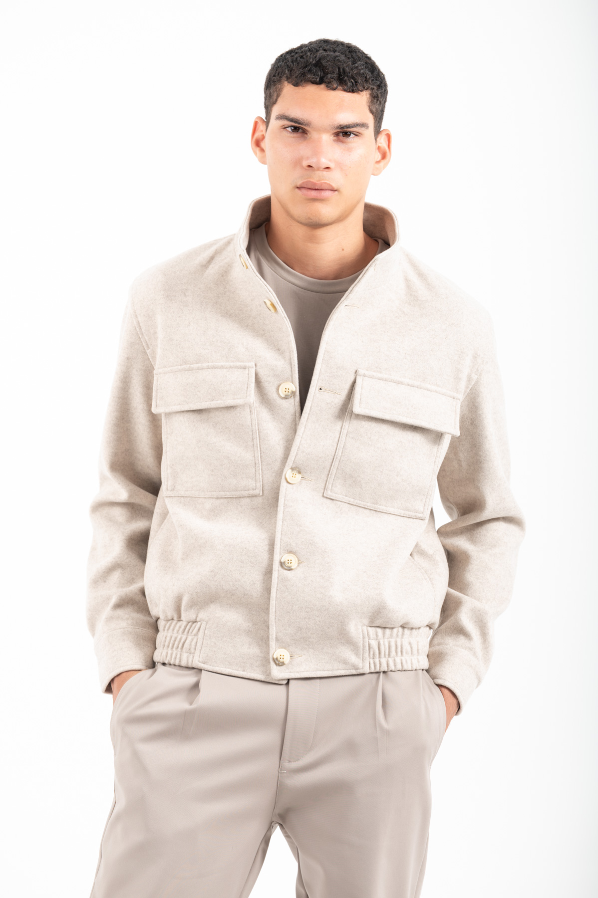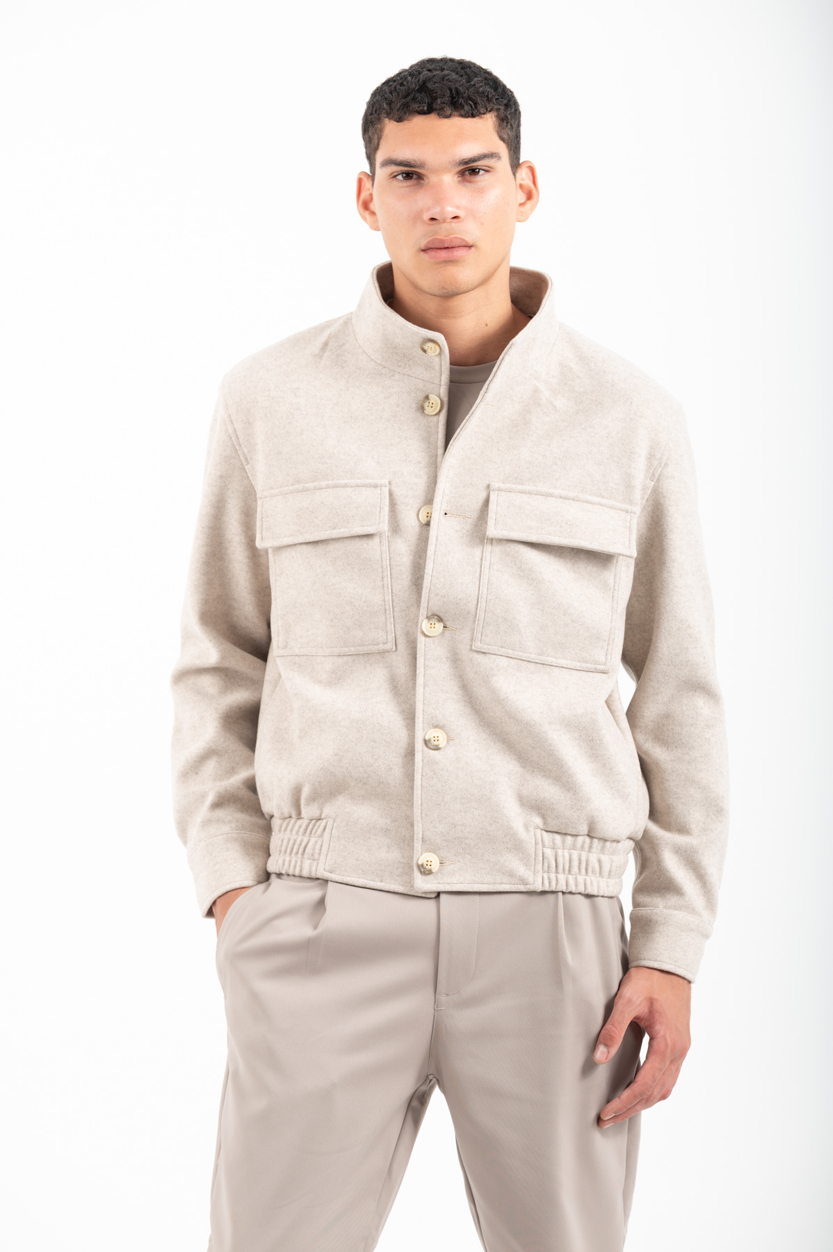 -Μπουφάν bomber με πλαϊνες και εξωτερικες τσέπες.Κλείσιμο με κουμπιά και λάστιχο στο κάτω μέρος