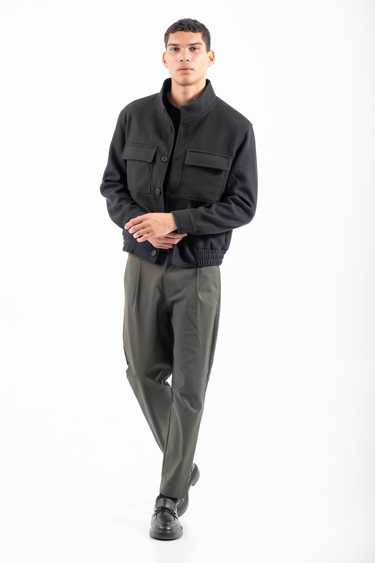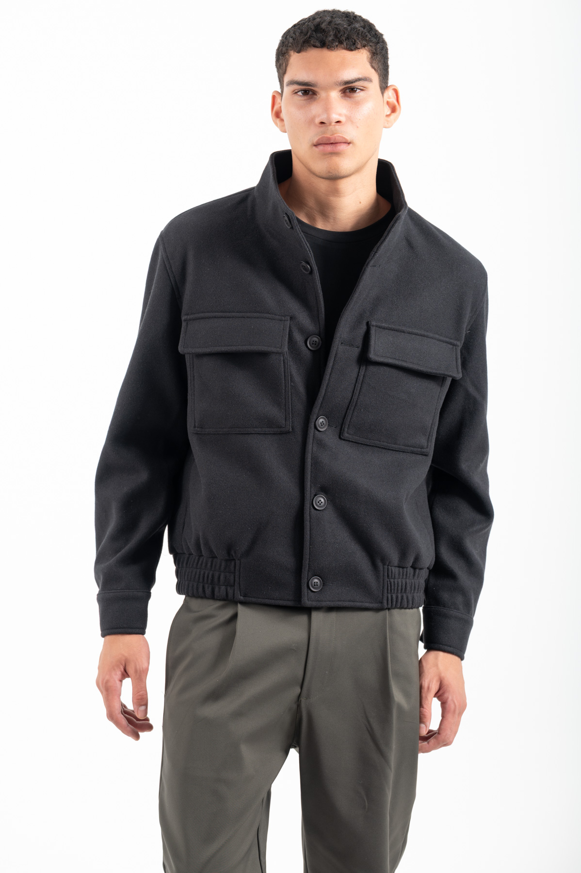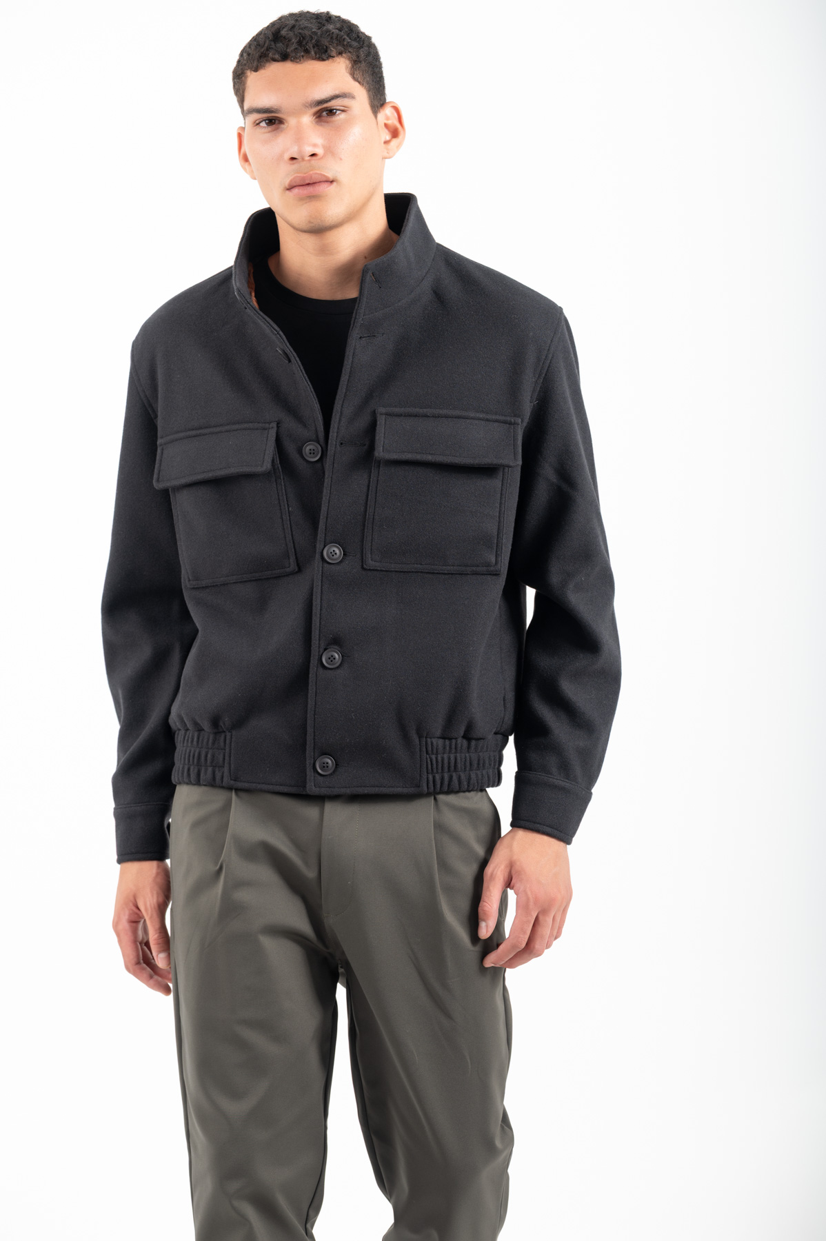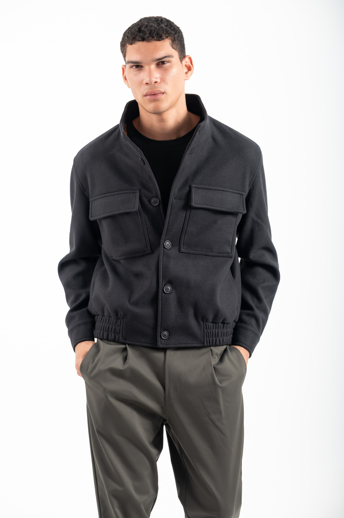 -Μπουφάν bomber με πλαϊνες και εξωτερικες τσέπες.Κλείσιμο με κουμπιά και λάστιχο στο κάτω μέρος