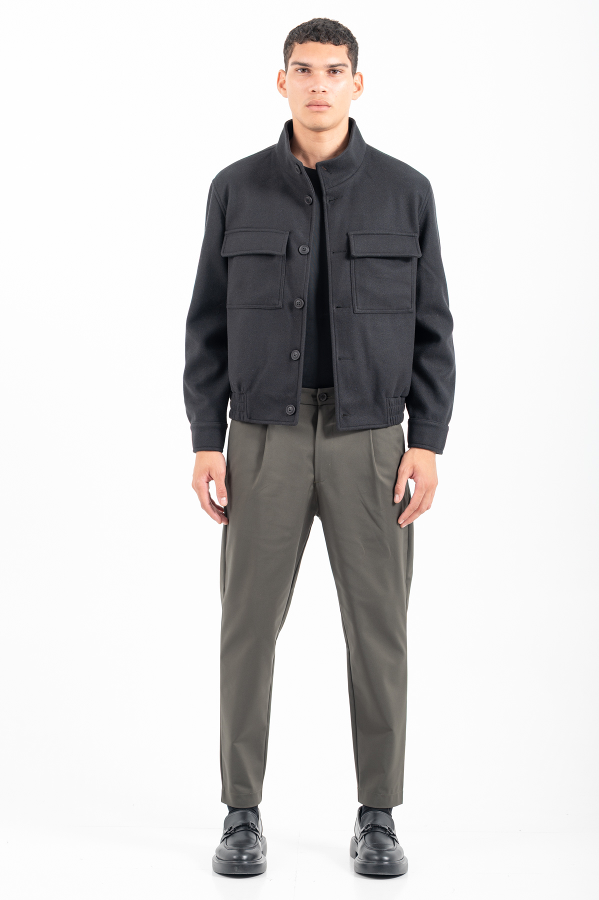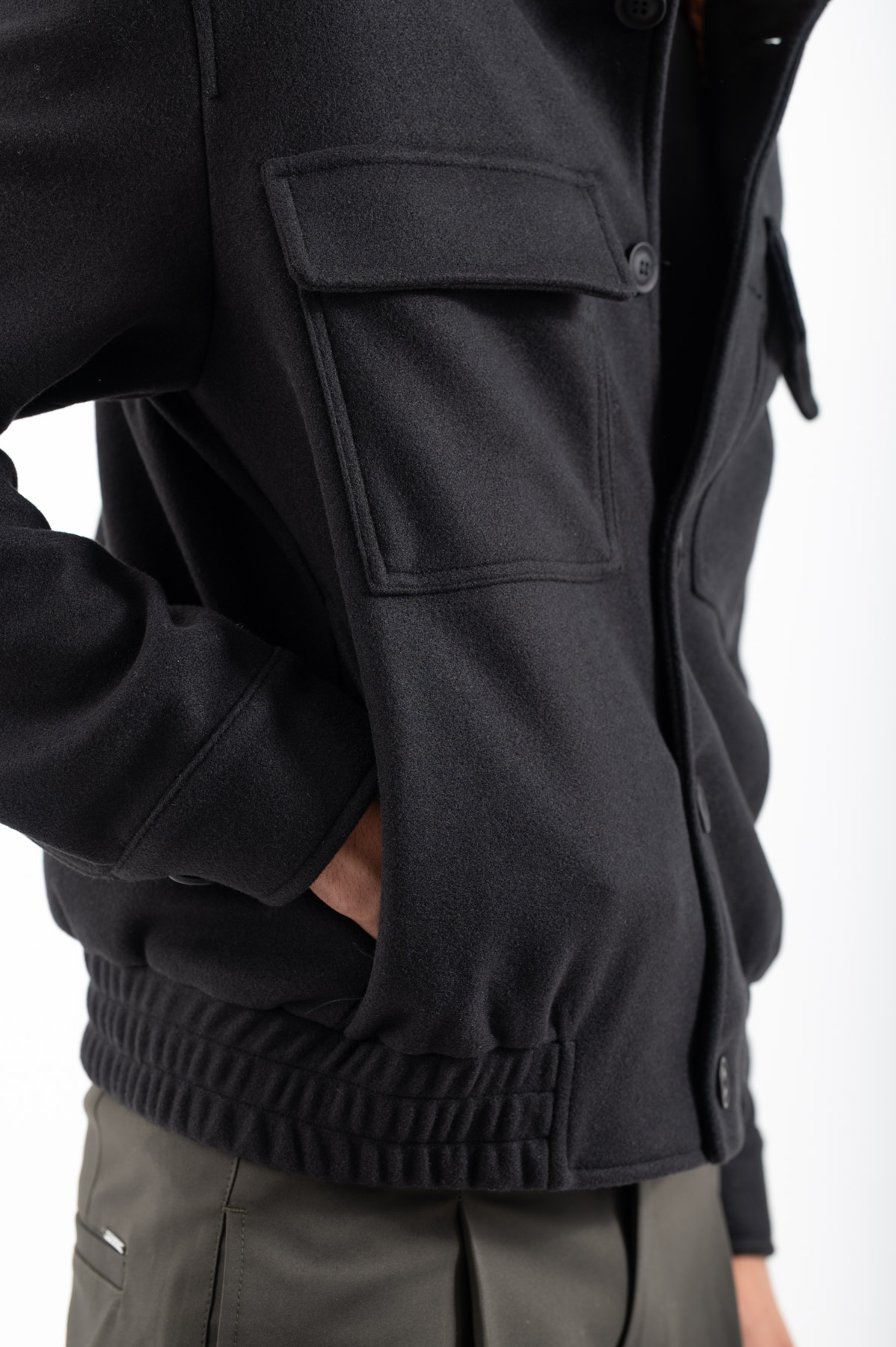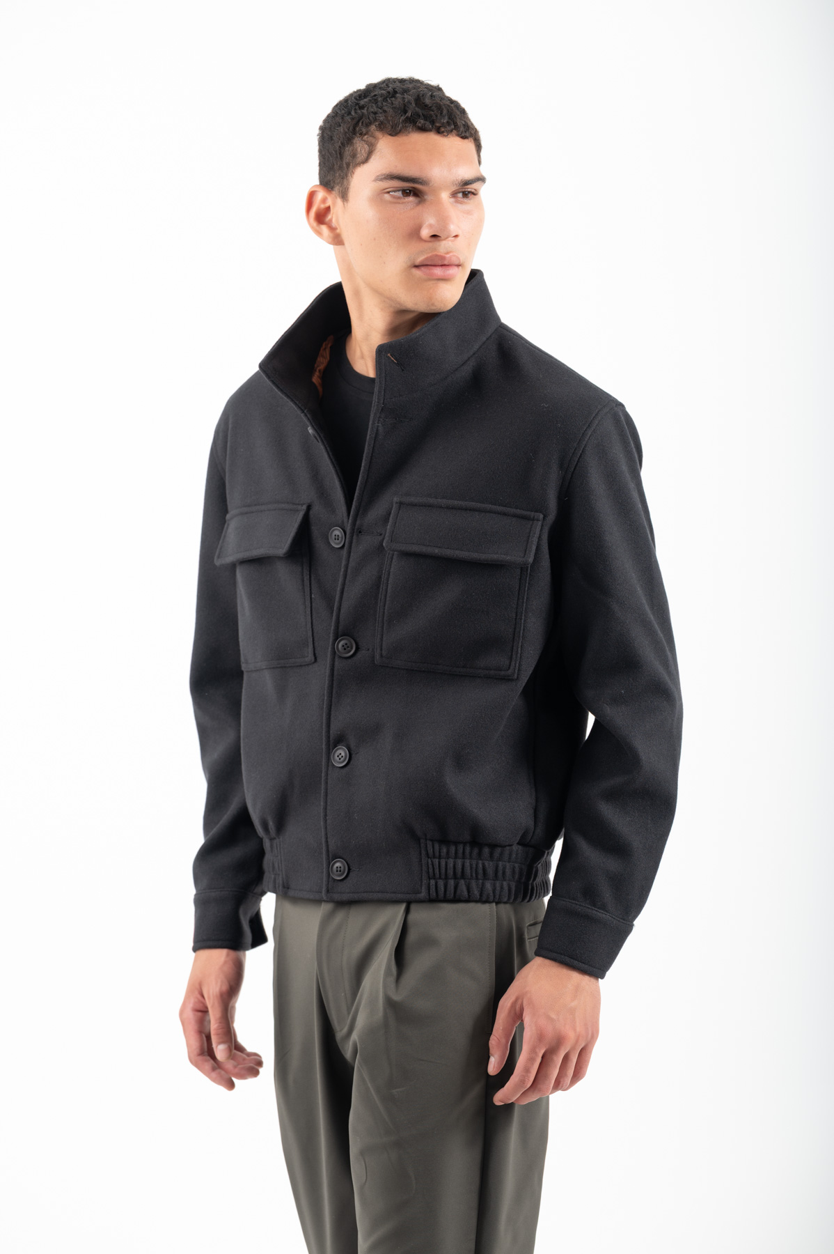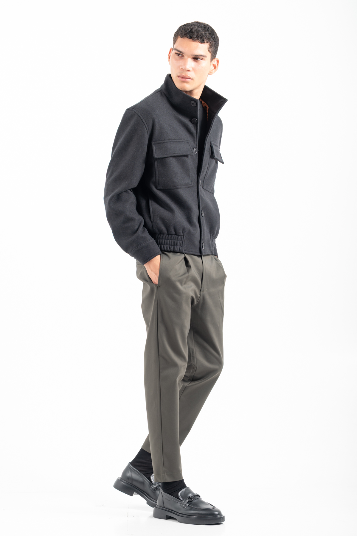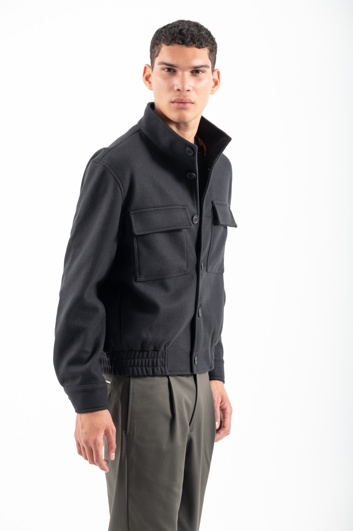 -Μπουφάν bomber με πλαϊνες και εξωτερικες τσέπες.Κλείσιμο με κουμπιά και λάστιχο στο κάτω μέρος