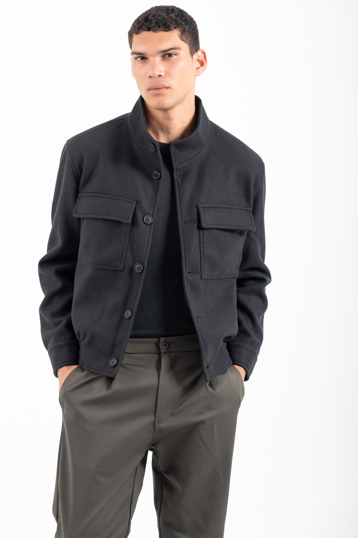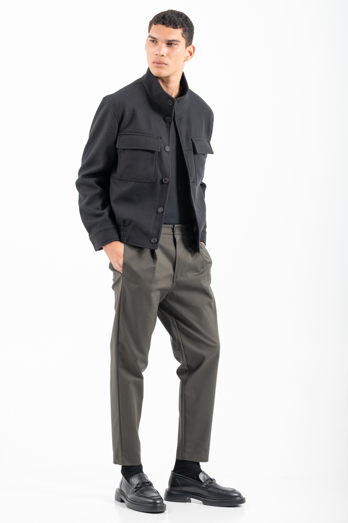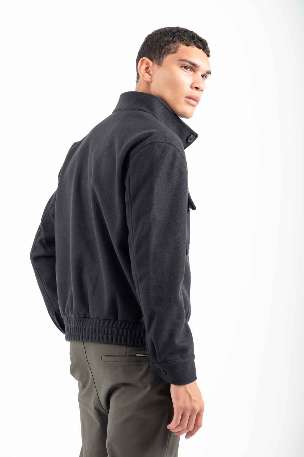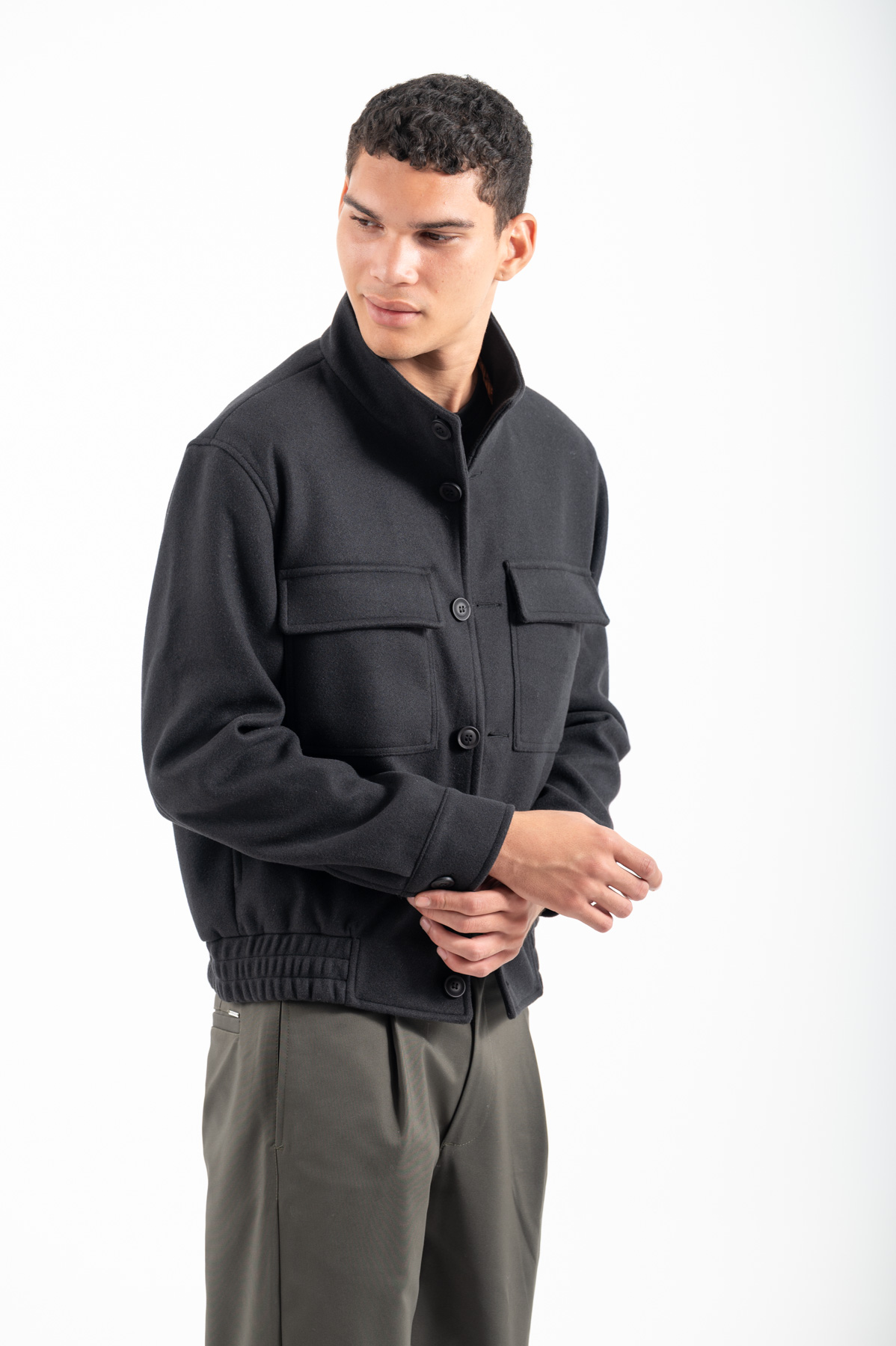 -Μπουφάν bomber με πλαϊνες και εξωτερικες τσέπες.Κλείσιμο με κουμπιά και λάστιχο στο κάτω μέρος