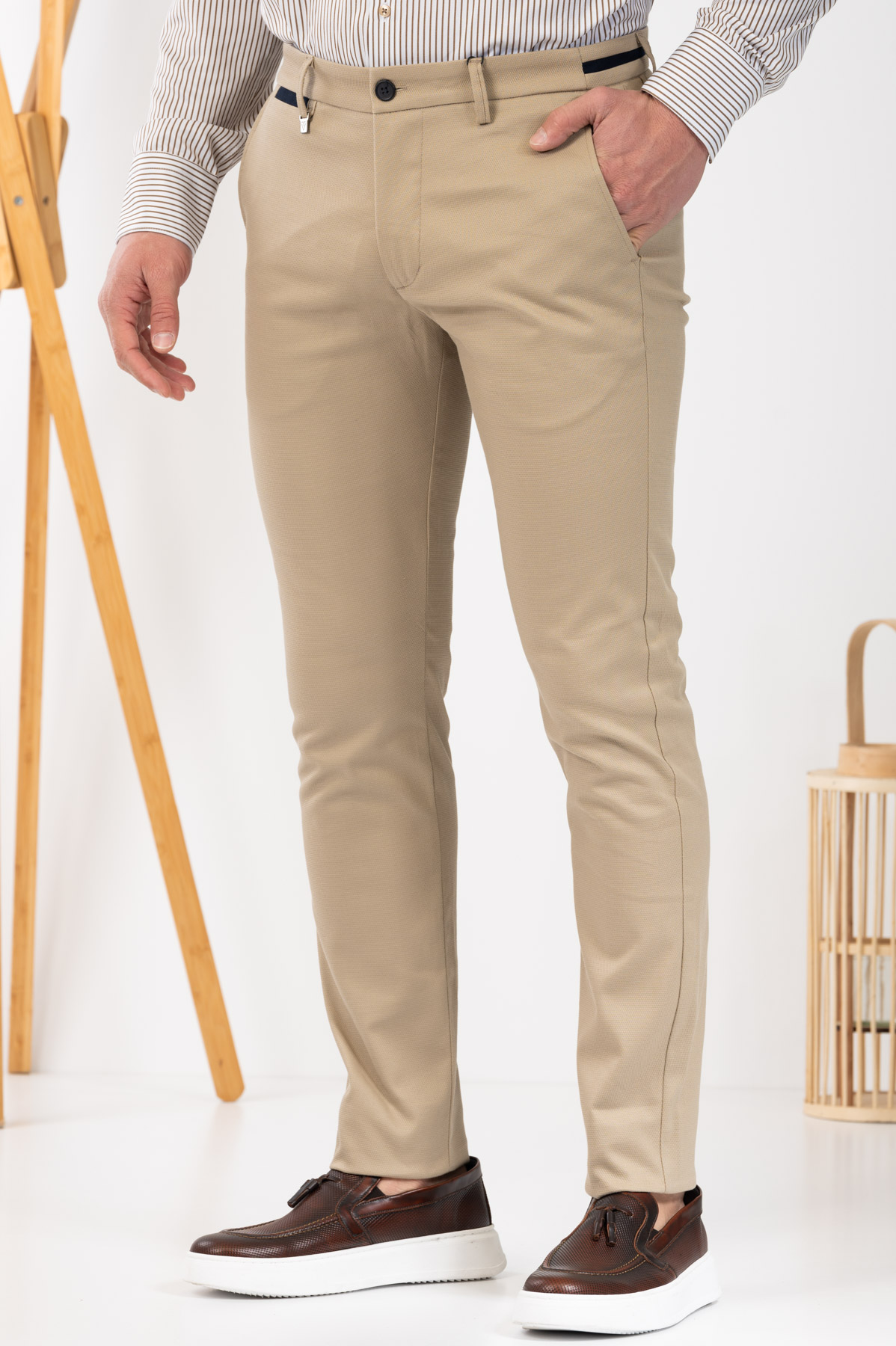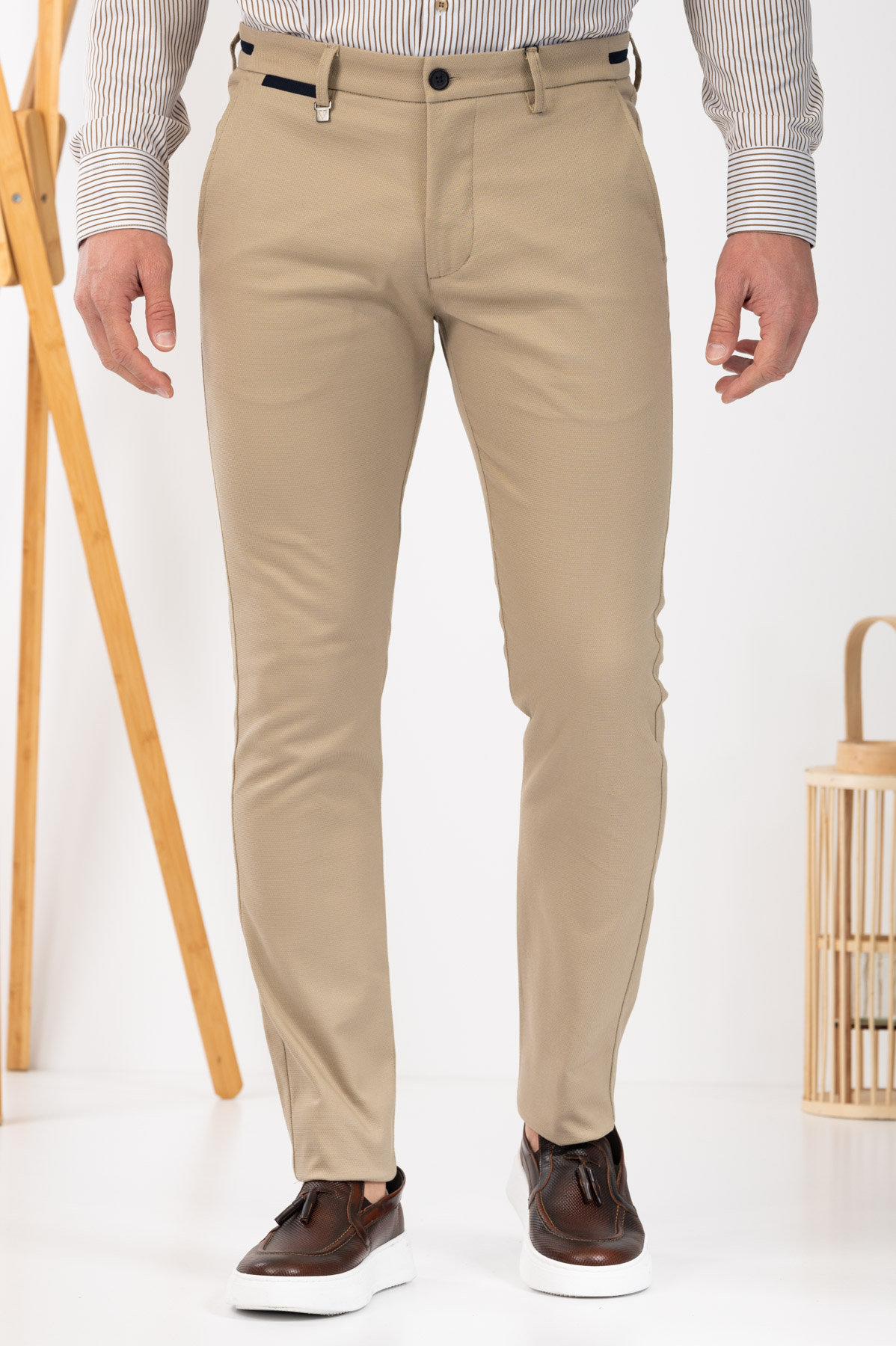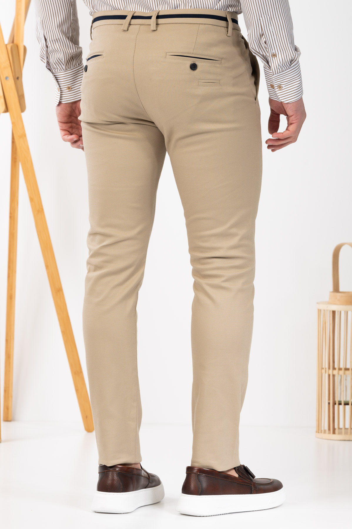 -Παντελόνι chino με δίχρωμες λεπτομέρειες σε ζωνάρι και μέση