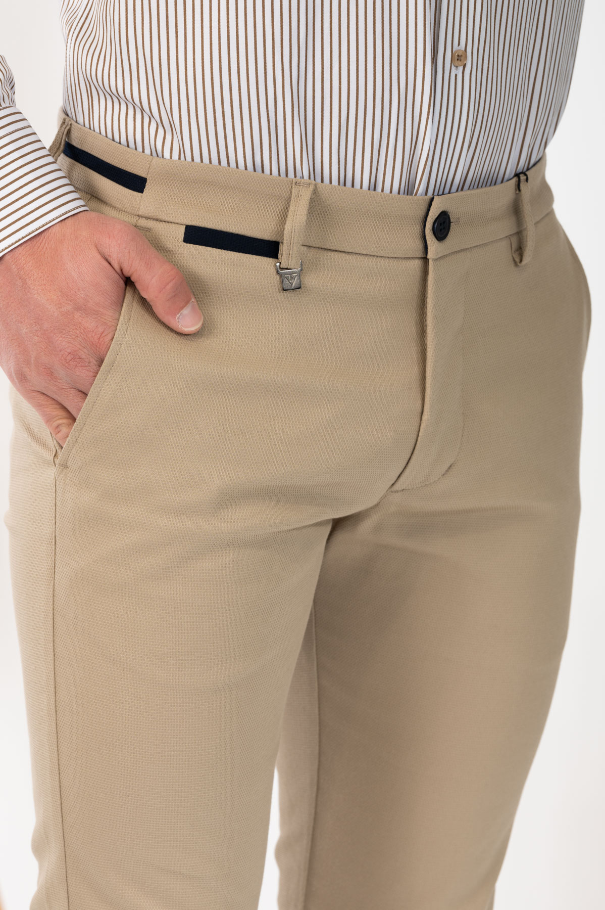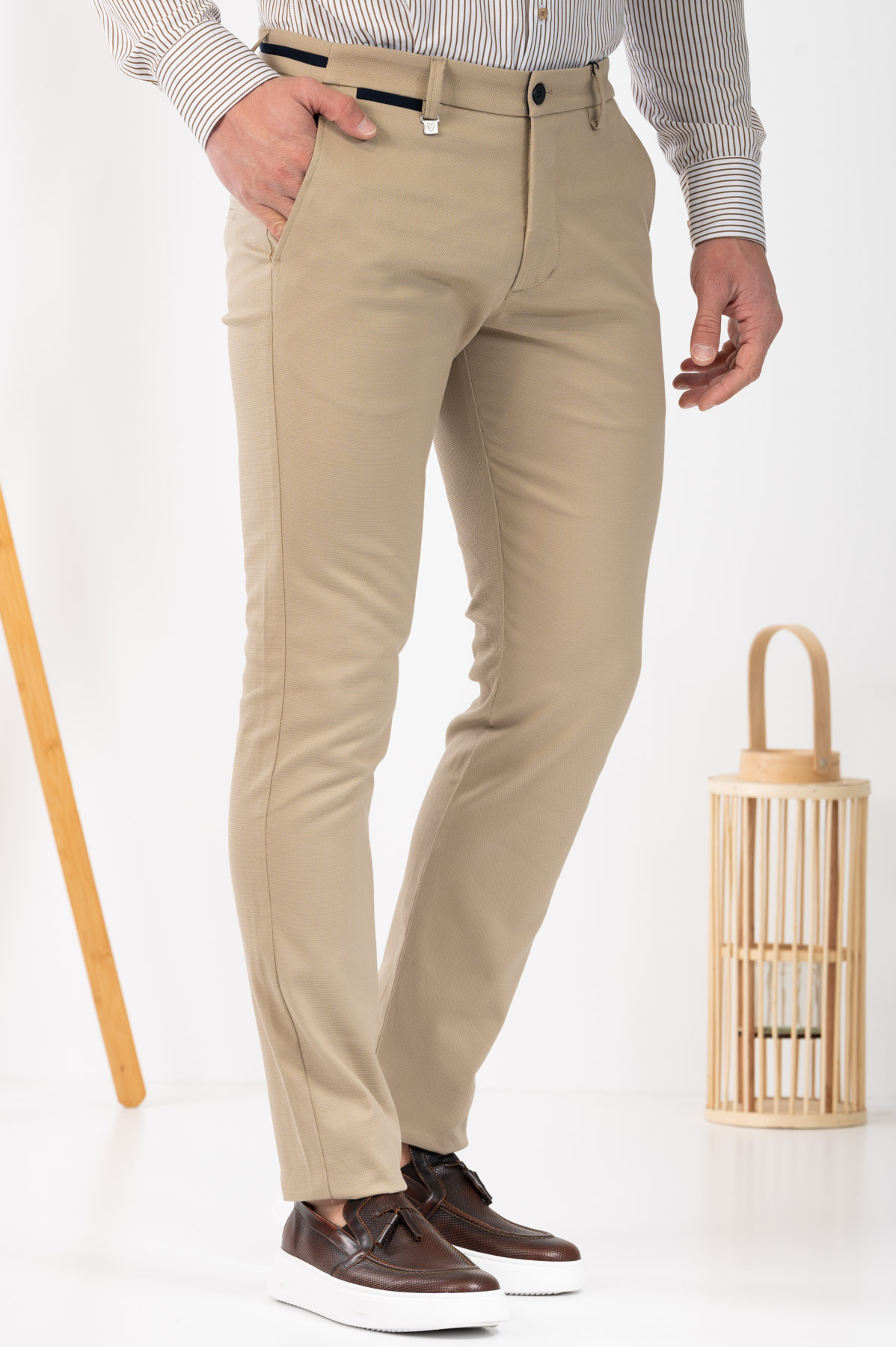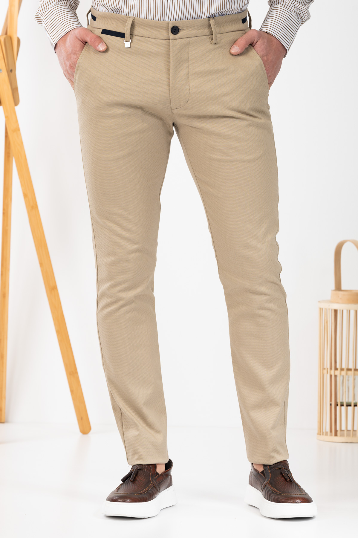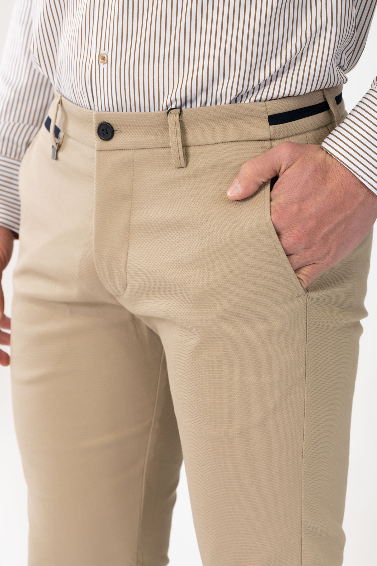 -Παντελόνι chino με δίχρωμες λεπτομέρειες σε ζωνάρι και μέση