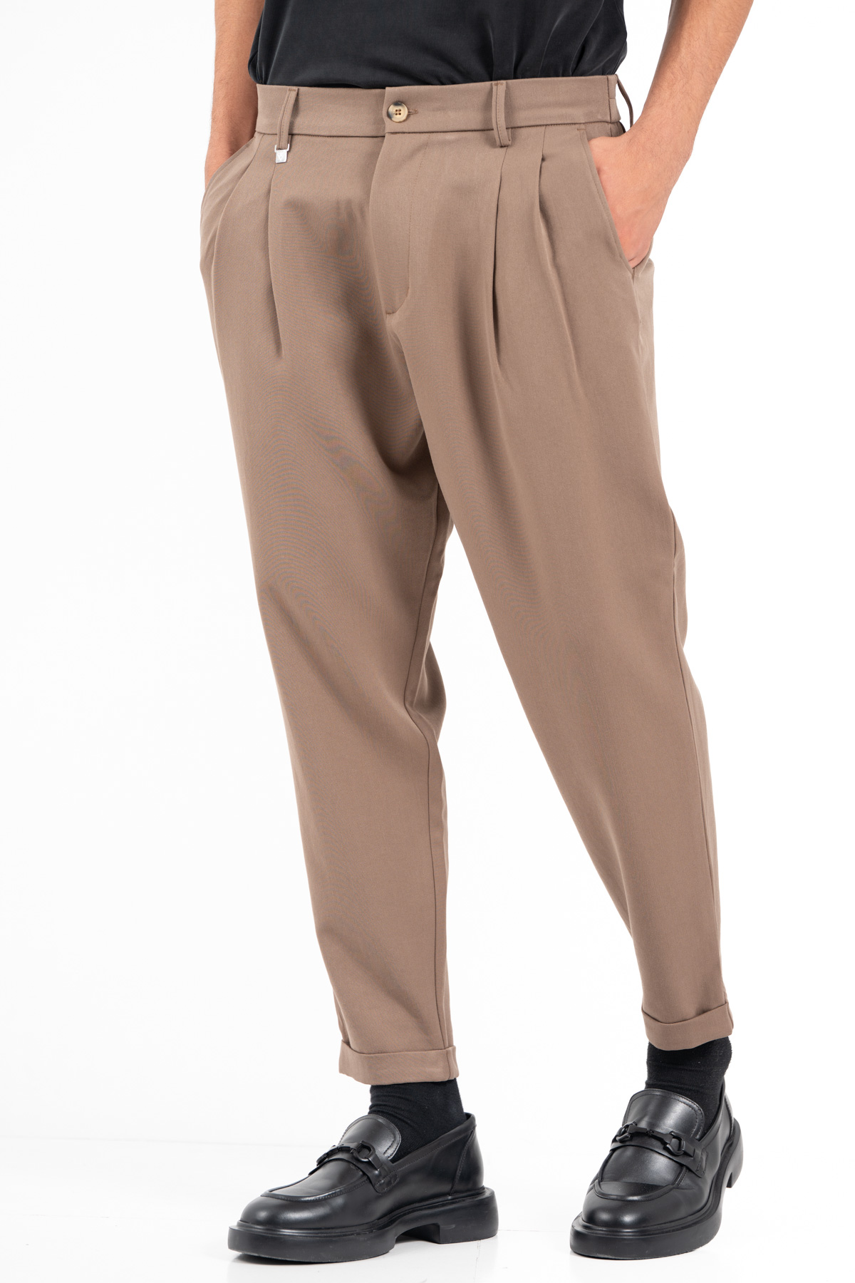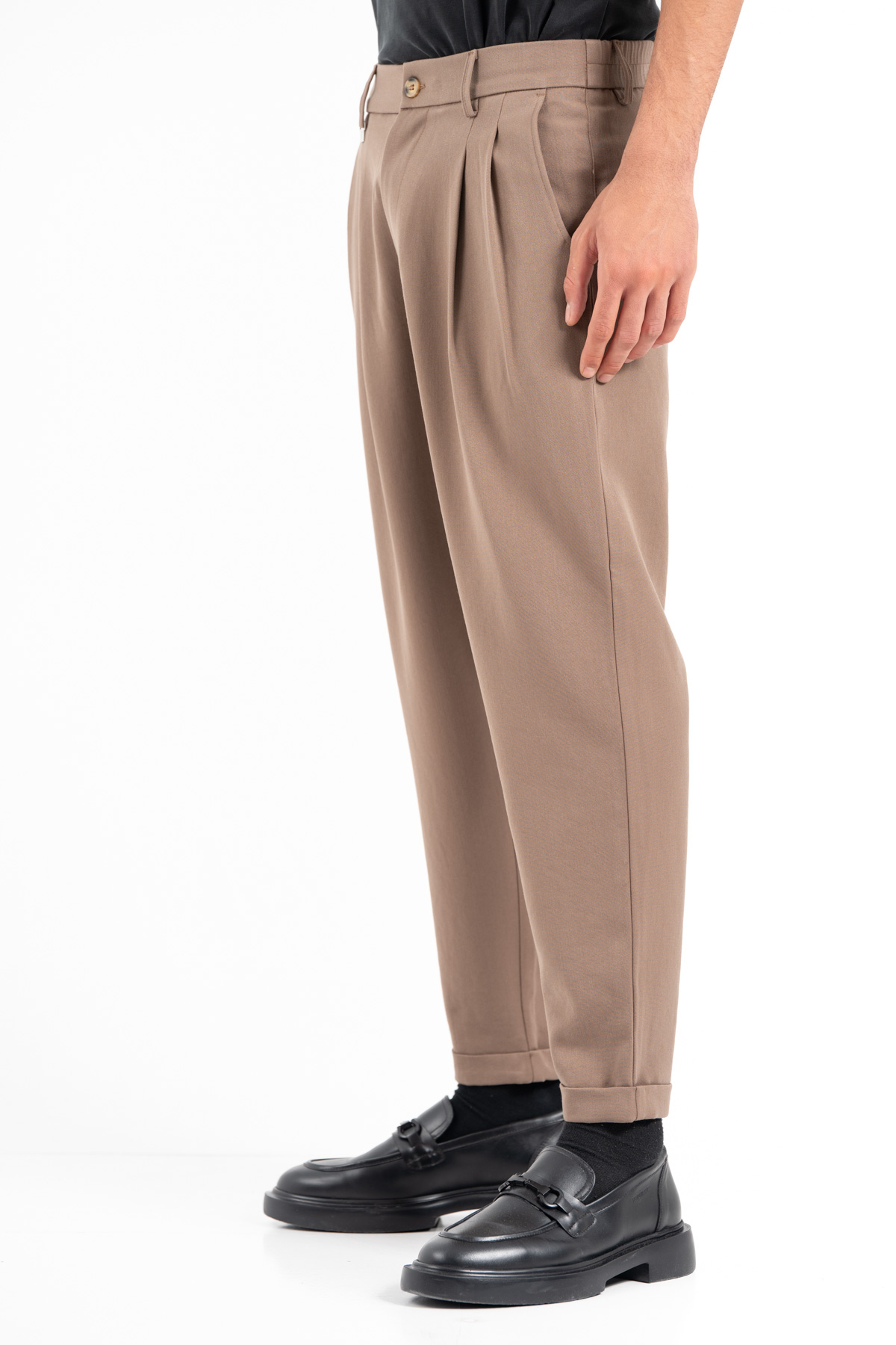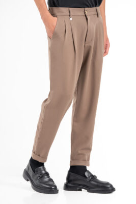 -Παντελόνι δίπιετο με λάστιχο στη μέση και ρεβέρ