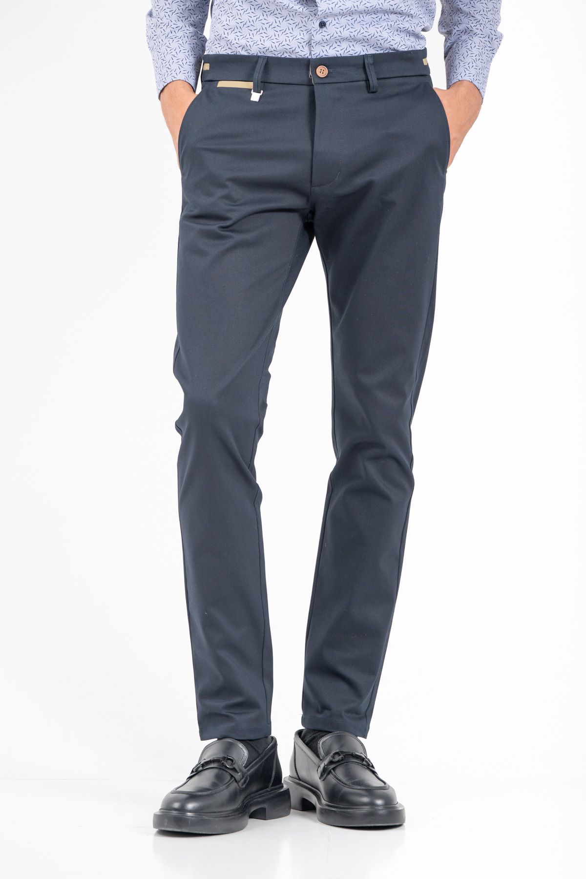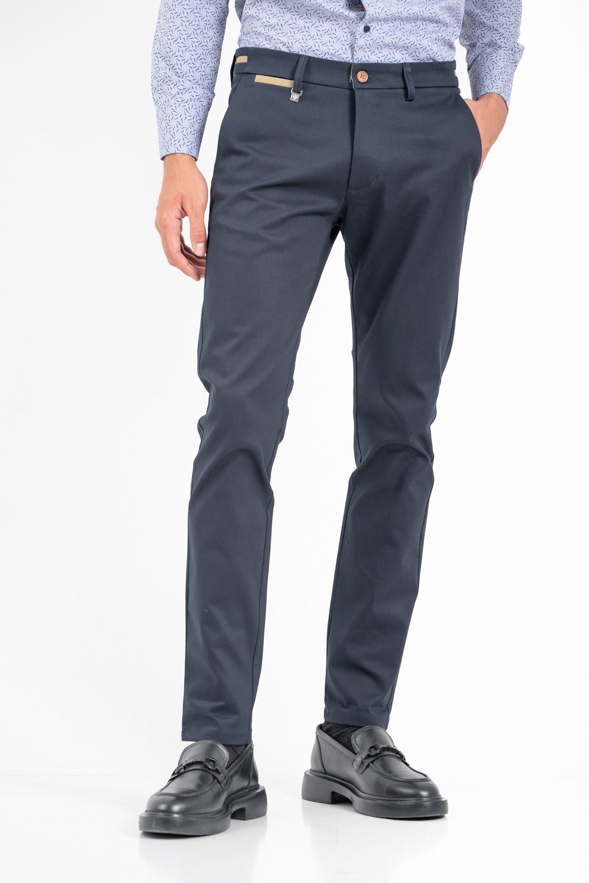 -Παντελόνι chino με δίχρωμες λεπτομέρειες σε ζωνάρι και μέση