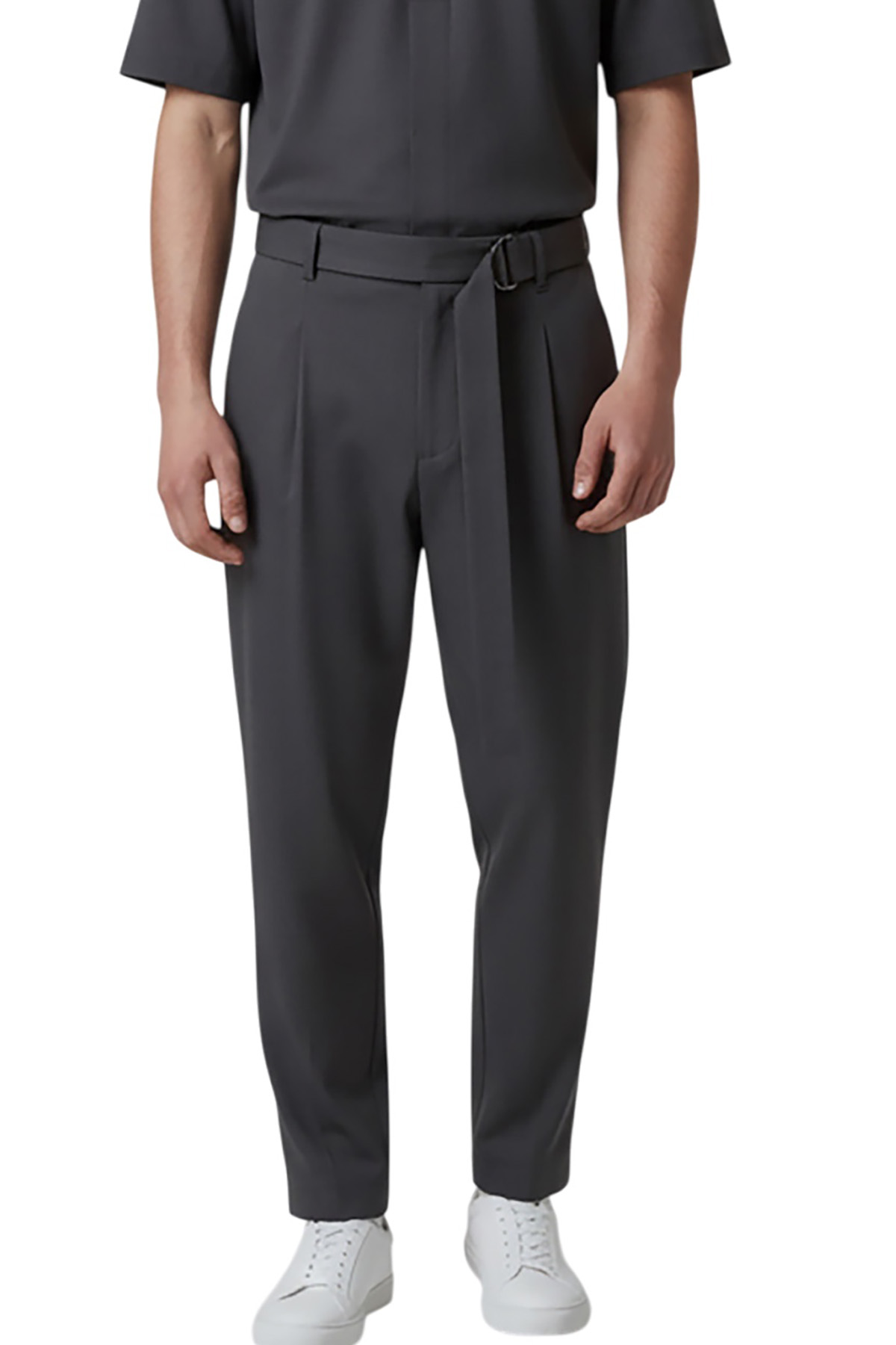 -Παντελόνι μονόπιετο με ζώνη από το ίδιο ύφασμα