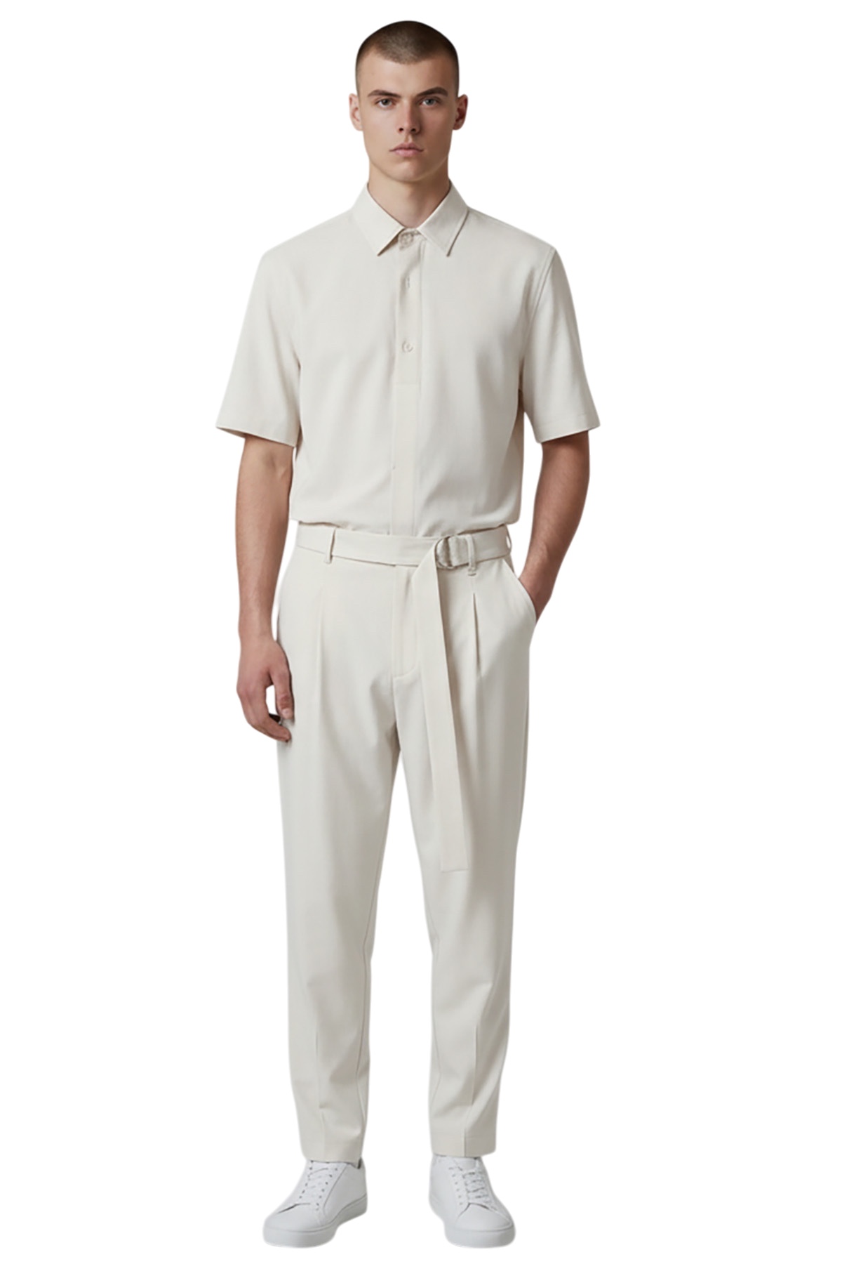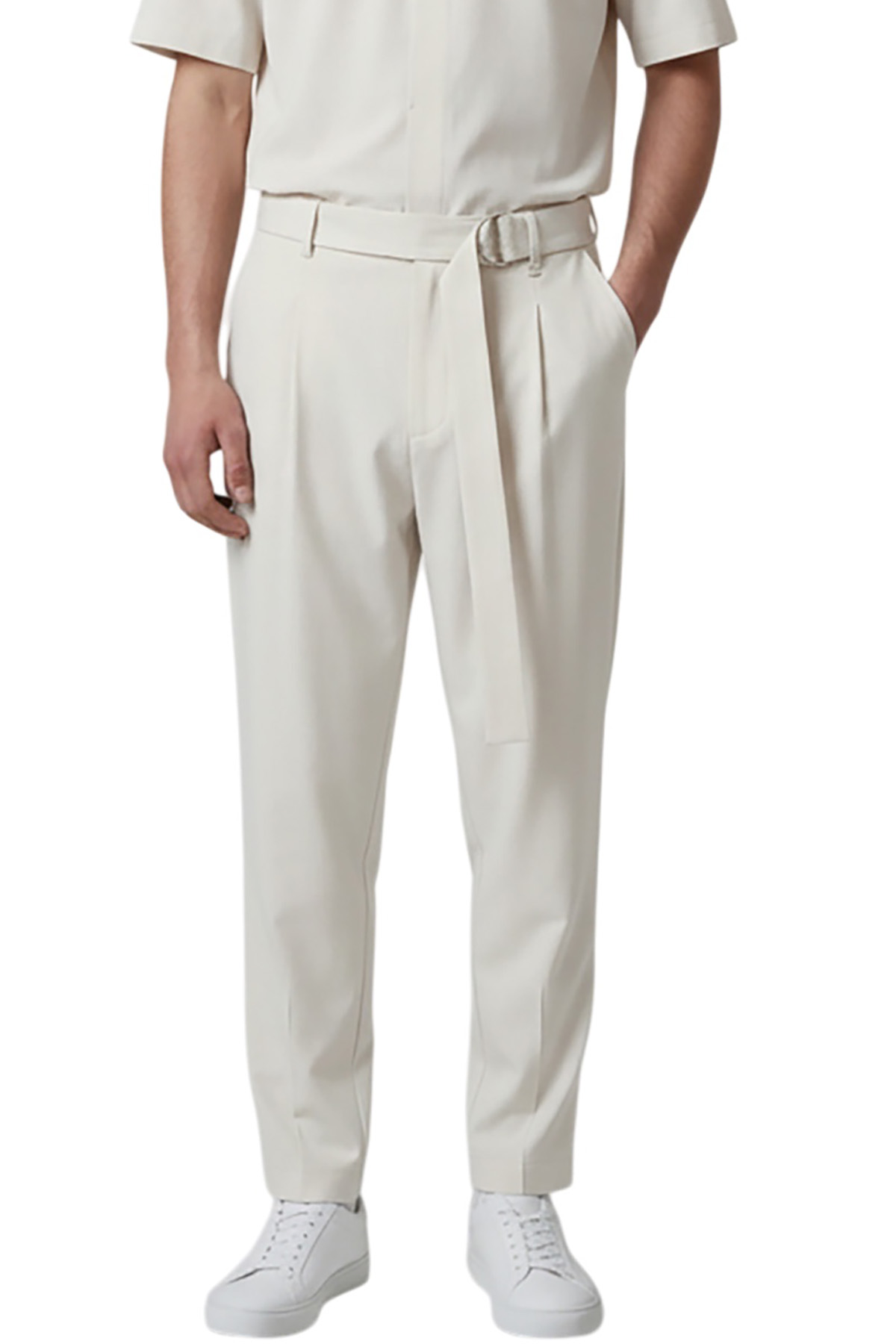 -Παντελόνι μονόπιετο με ζώνη από το ίδιο ύφασμα