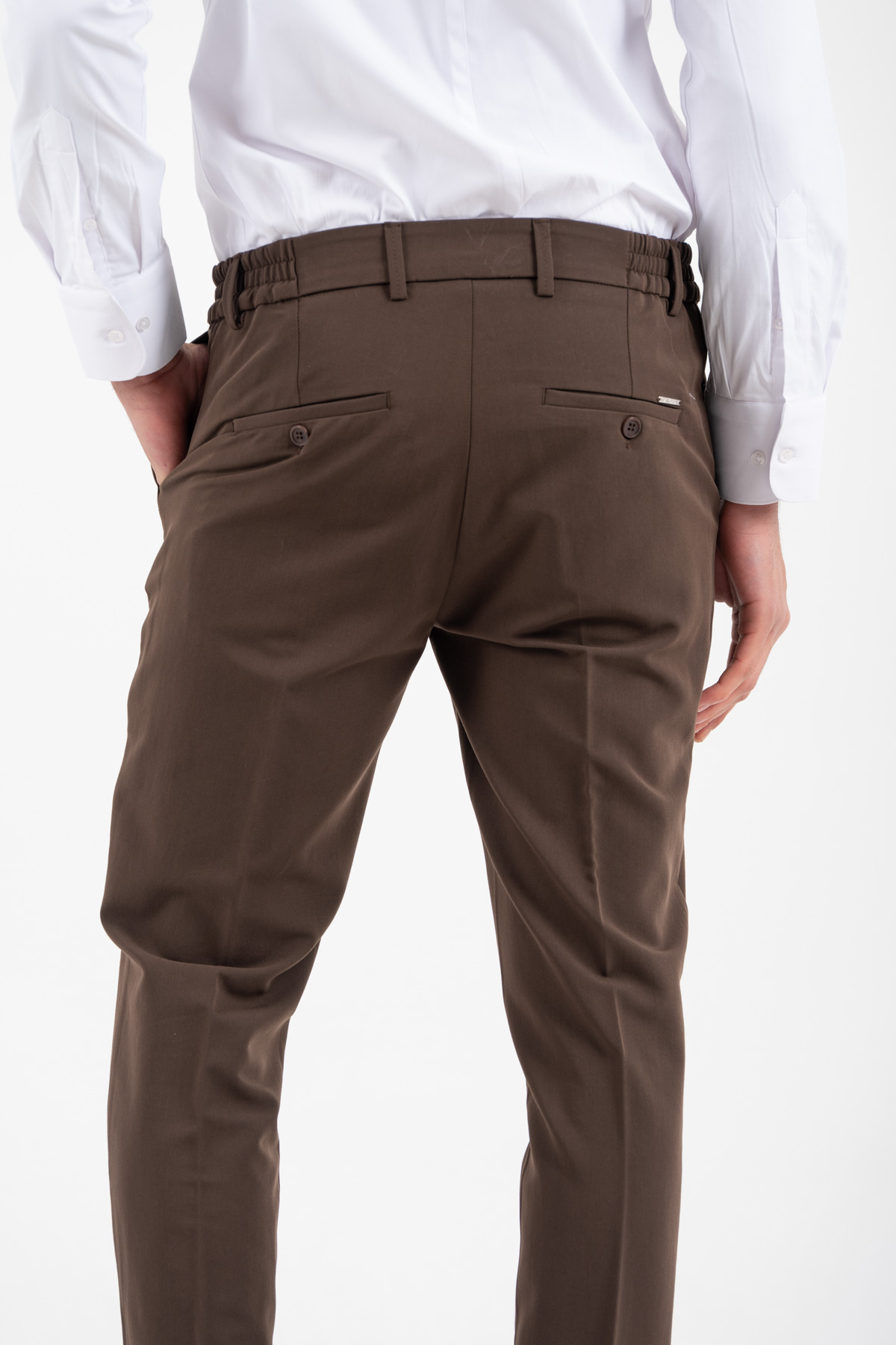 -Παντελόνι σε slim γραμμή. Κλείσιμο με κουμπί και λάστιχο στη μέση για καλύτερη εφαρμογή
