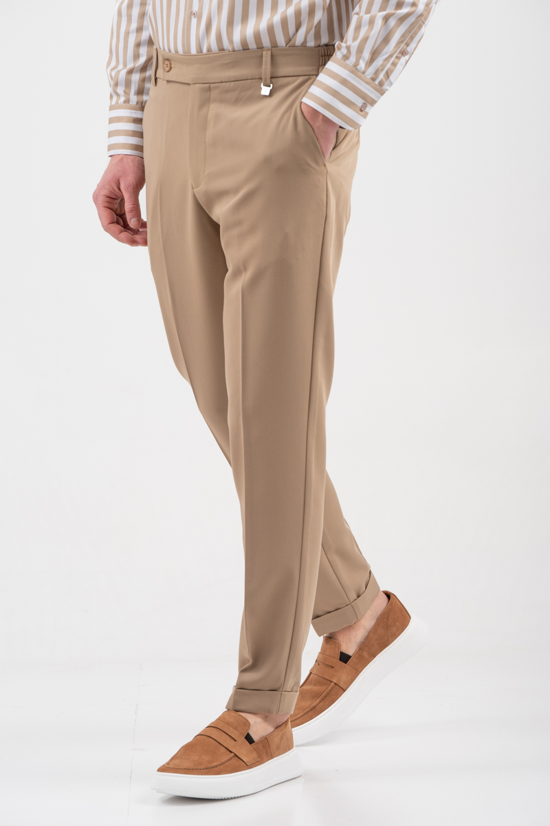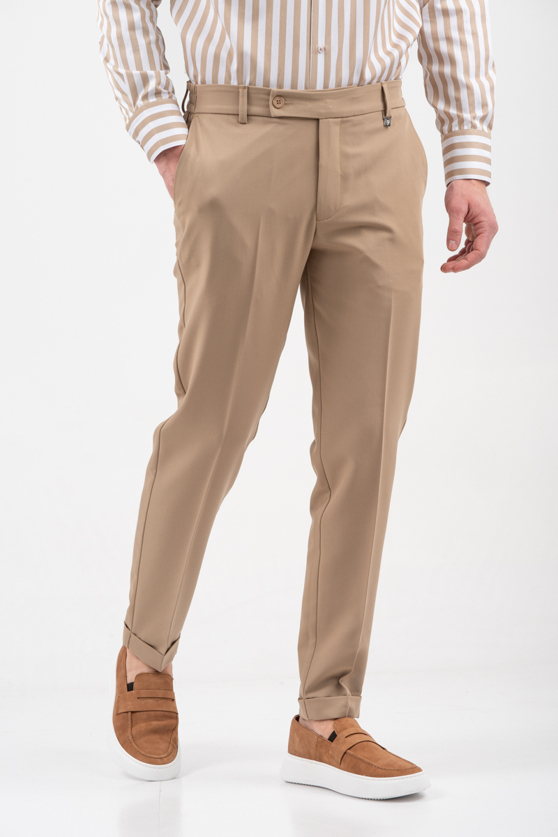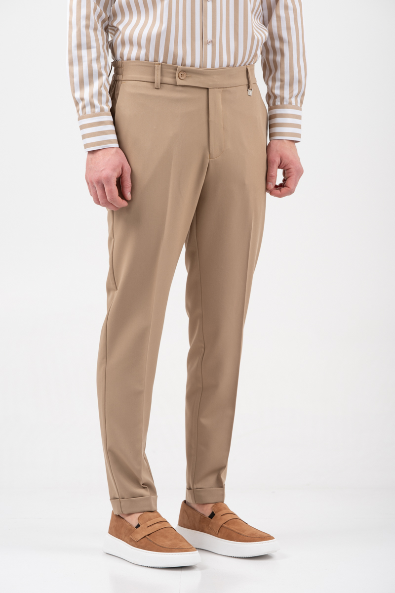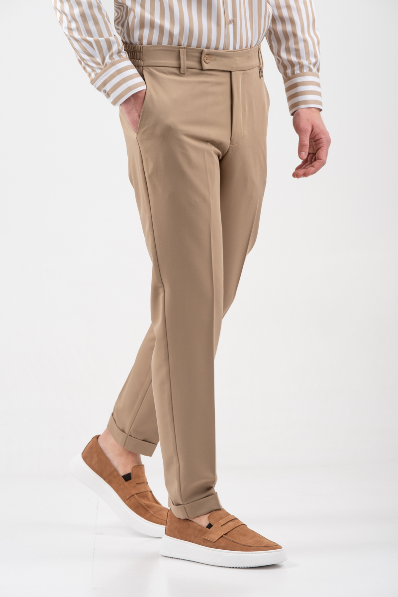 -Παντελόνι σε slim γραμμή. Κλείσιμο με κουμπί και λάστιχο στη μέση για καλύτερη εφαρμογή