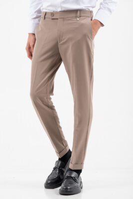 -Παντελόνι σε slim γραμμή. Κλείσιμο με κουμπί και λάστιχο στη μέση για καλύτερη εφαρμογή