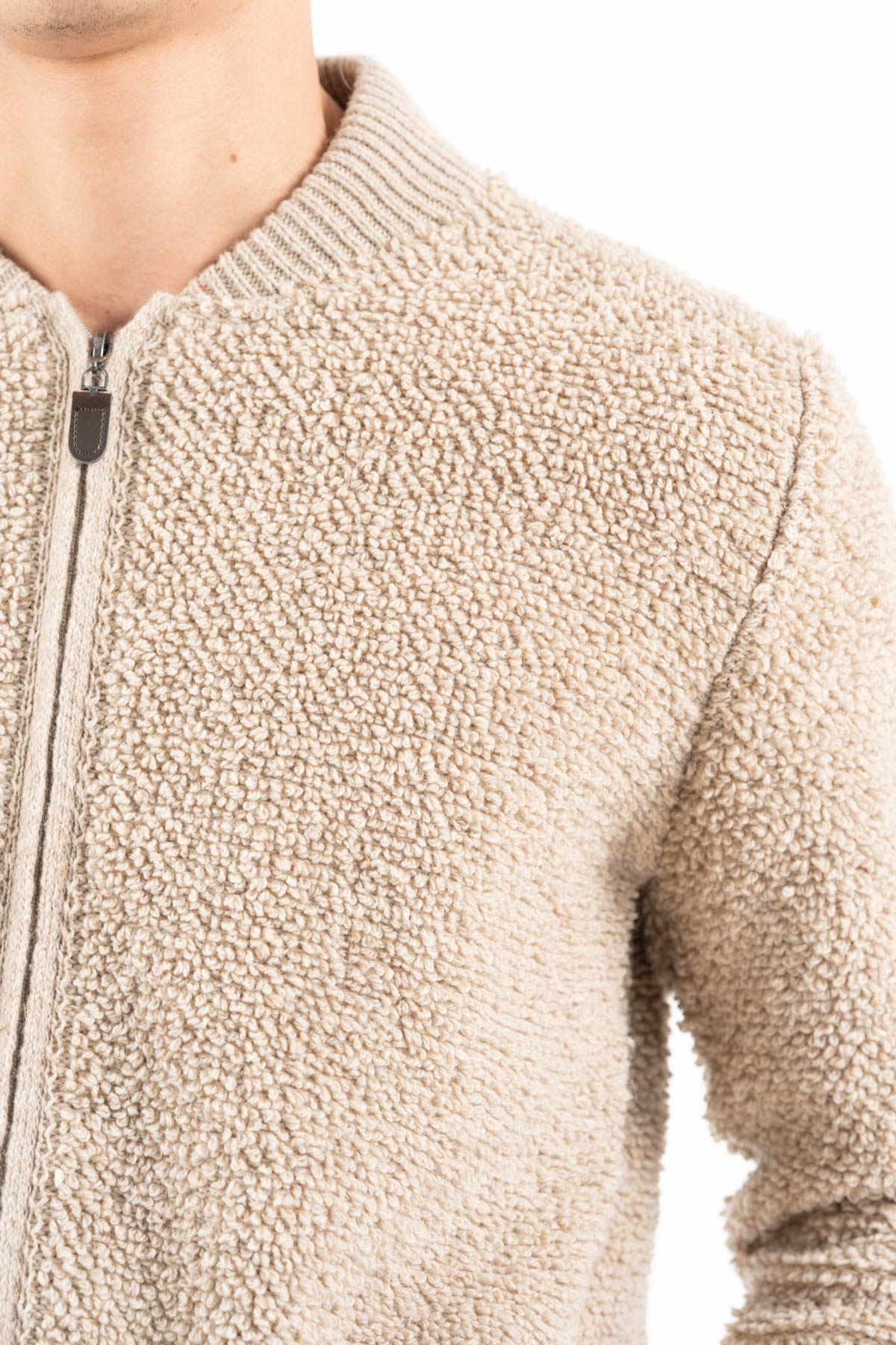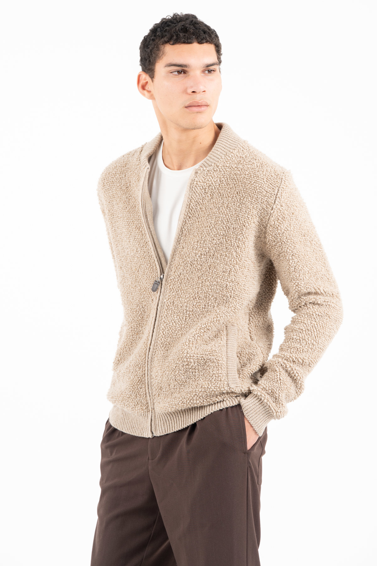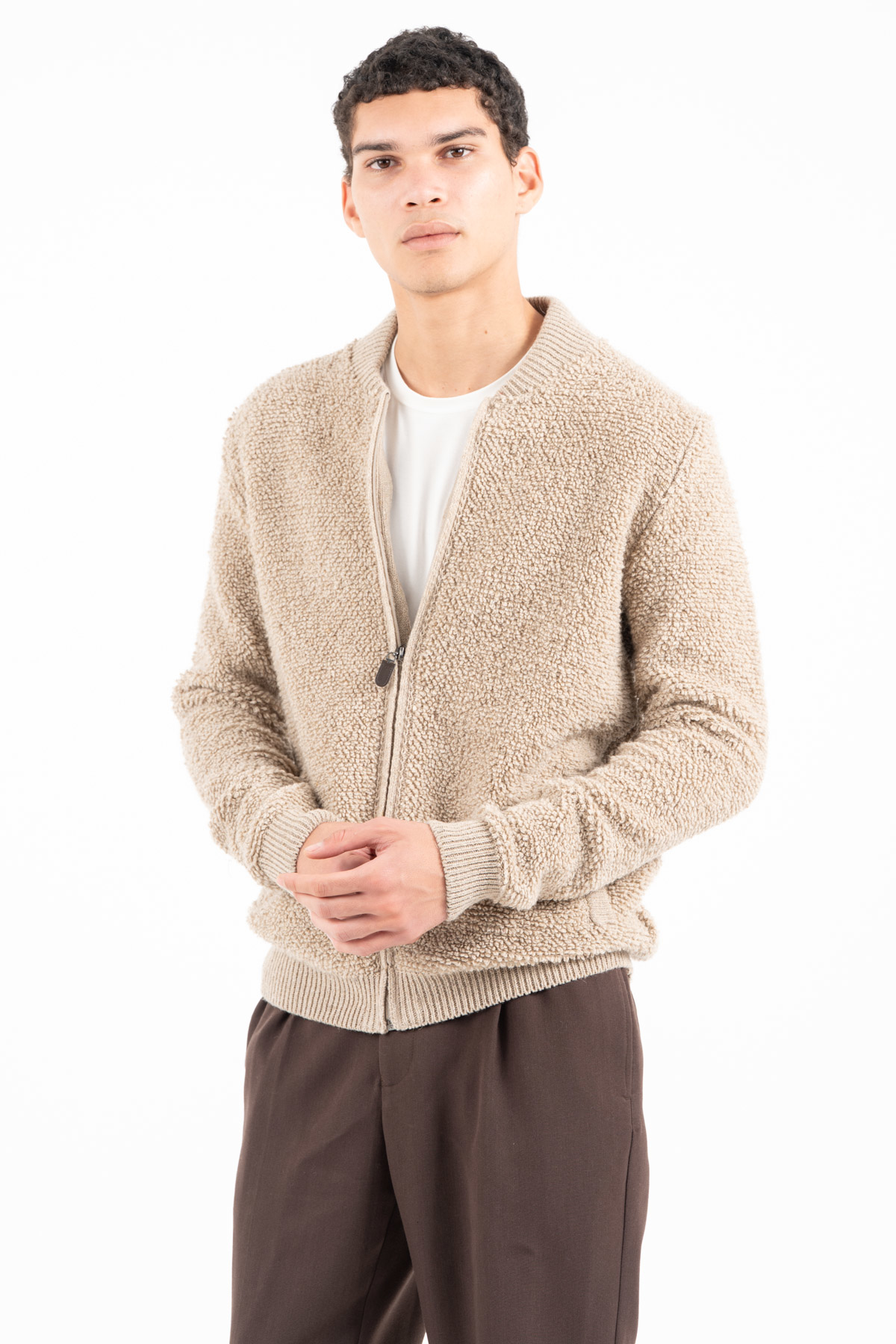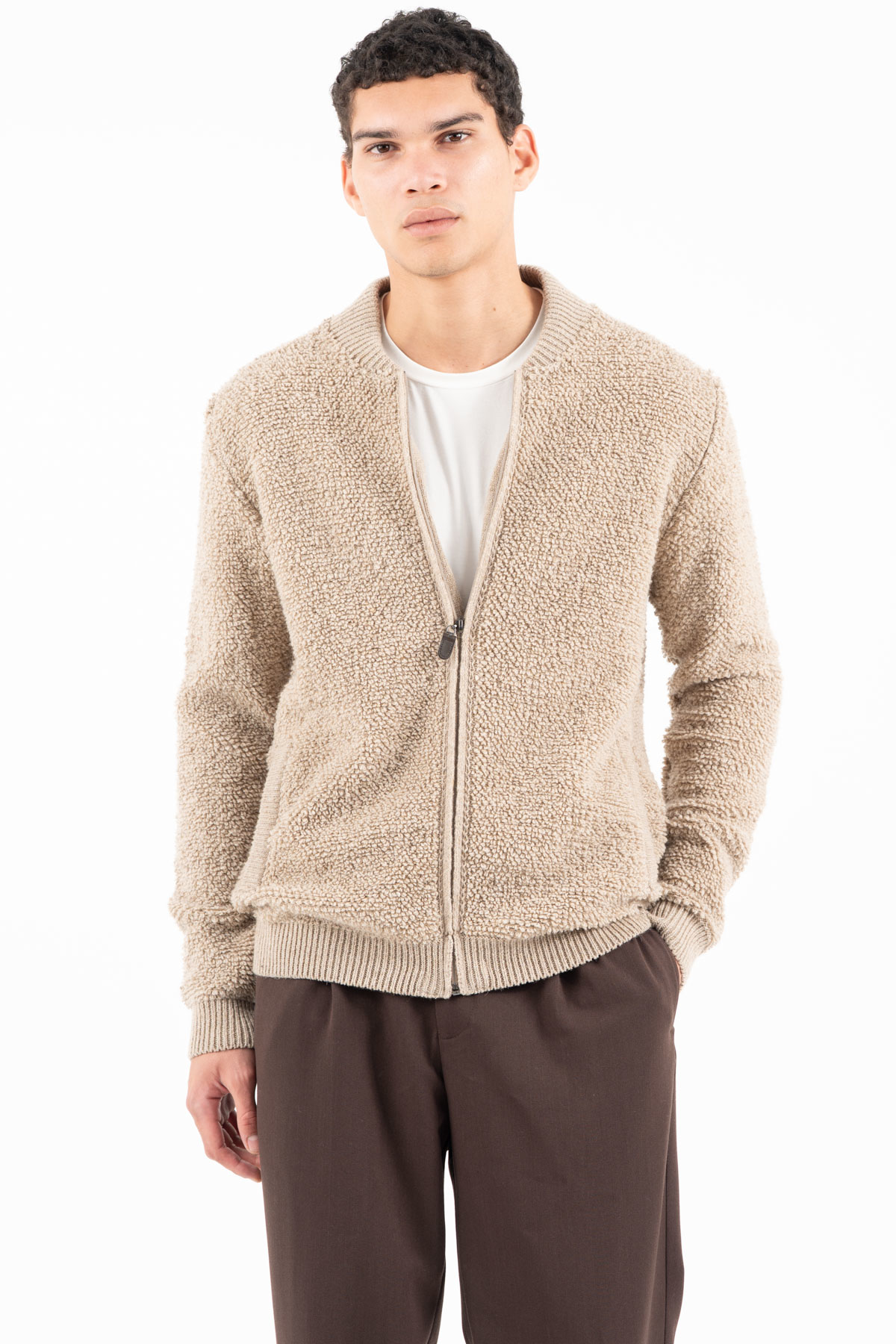 -Πλεκτή ζακέτα σε μπουκλέ νήμα