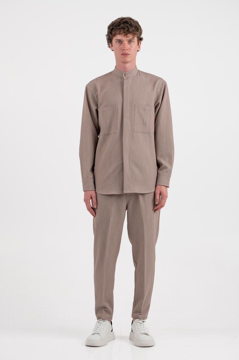 -Overshirt με εξωτερικές τσέπες και mao γιακά