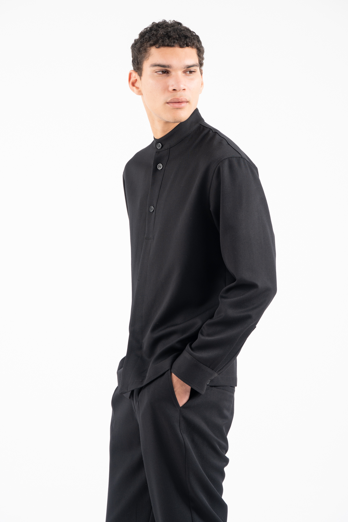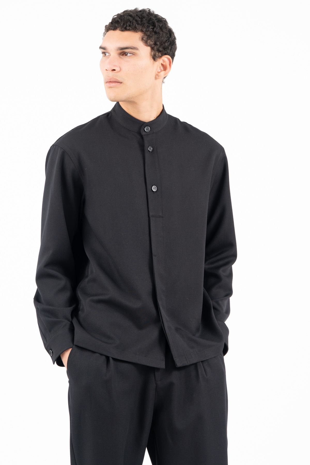 -Overshirt με μάο γιακά και κρυφή πατιλέτα στο κλείσιμο