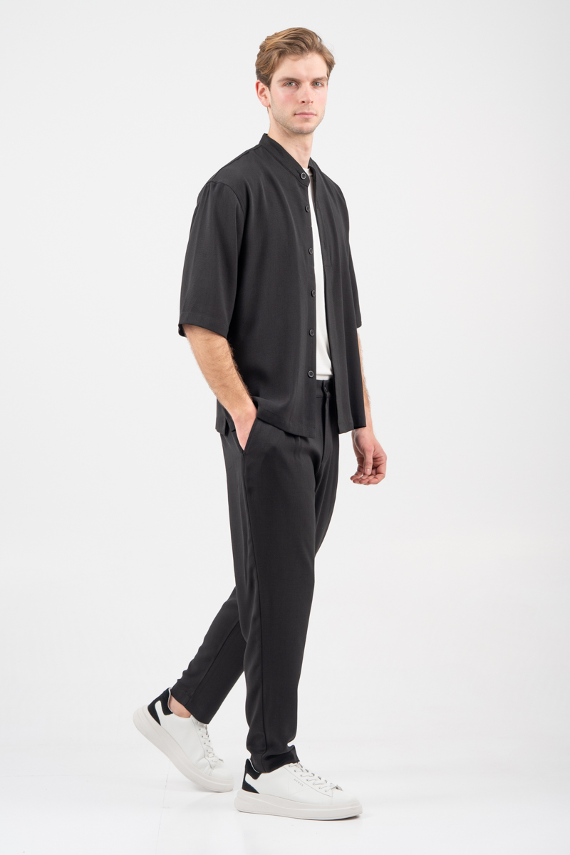 -Overshirt-Μάο γιακάς,τρουακάρ μανίκι και κλείσιμο με κουμπιά