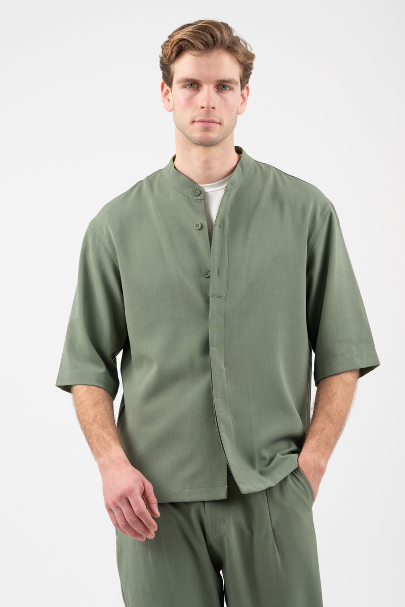 -Overshirt-Μάο γιακάς,τρουακάρ μανίκι και κλείσιμο με κουμπιά