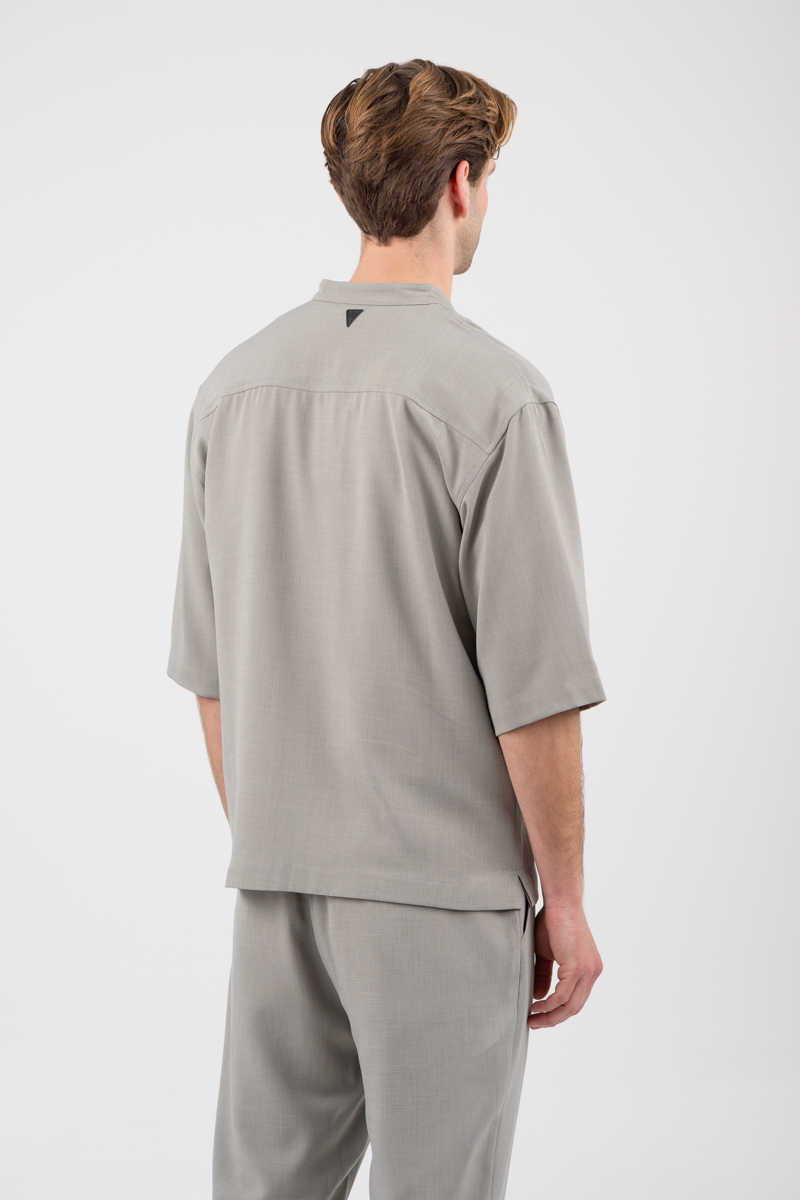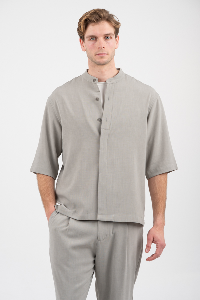-Overshirt-Μάο γιακάς,τρουακάρ μανίκι και κλείσιμο με κουμπιά